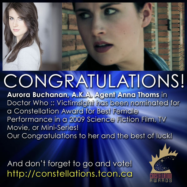 Doctor Who :: Victimsight made it on the ballot for the Constellation Awards! Congratulations to Aurora Buchanan who played Anna Thoms. She has been nominated for Best Actress in a movie. We want to wish Aurora the best of luck.